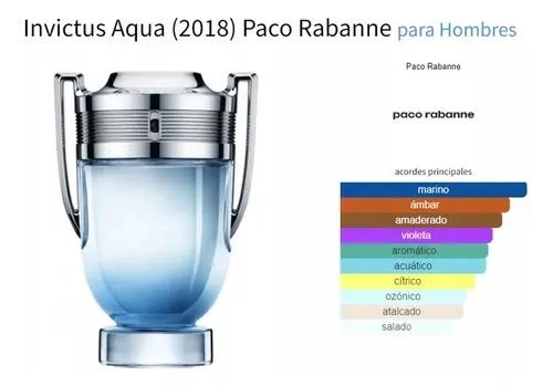 Invictus Aqua de Paco Rabanne es una fragancia que combina frescura, vitalidad y sofisticación en una composición equilibrada y moderna. Perfecta para el hombre que busca una esencia revitalizante y envolvente, esta fragancia es una verdadera declaración de estilo y energía, ideal para destacar en cualquier ocasión.
